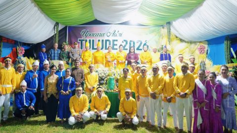 BOLMONG – Wakil Bupati (Wabup) Bolaang Mongondow (Bolmong), Dony Lumenta, menghadiri perayaan Adat Tulude di Desa Tiberias, Kecamatan Poigar, Sabtu 15 Februari 2026. Dalam acara tersebut, Wabup Bolmong juga didampingi Sekretaris TP-PKK, Ny. Pdt. Syliane Lumenta Pangalila.